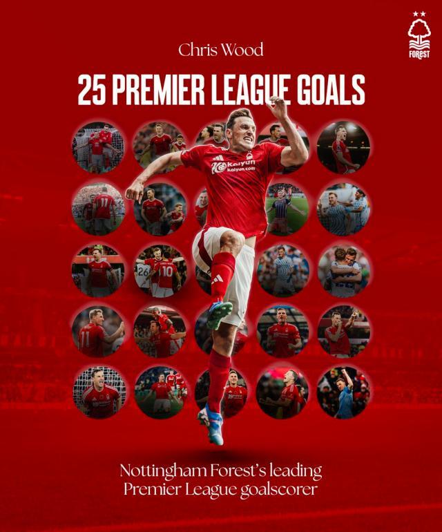 第53分钟,吉布斯-怀特助攻当天33岁生日的克里斯·伍德再下一城,3-1!这是伍德代表诺丁汉森林打进的第25个英超进球,队史第一!