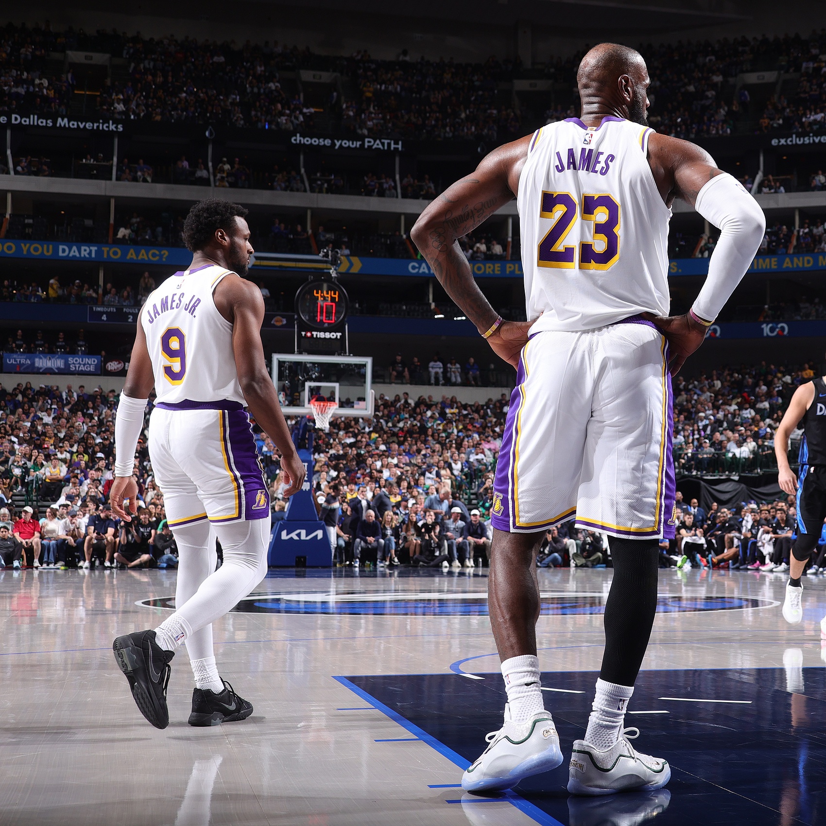勒布朗,你是不是在吓唬他,让他非得把球传给你?因为他在G联盟,他会绕过那个掩护然后投篮,而且他能投进他在G联盟的数据实际上相当不错。所以,勒布朗,为什么你儿子在你身边就变成了一条胆小的吉娃娃?你是不是对着这孩子大喊大叫,吓唬他,搞得他在你面前打不了球?我之前以为他是在湖人球迷、在湖人队面前打不了球。现在,我觉得是因为你。每次你出现,这孩子就蔫了,他为什么畏手畏脚?我想看到那个蹦蹦跳跳、面带微笑的布朗尼。”